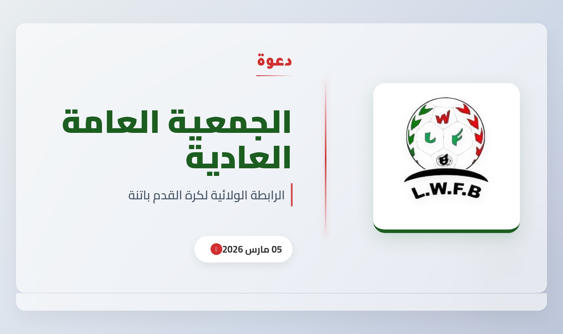 | اعلان المديرية الفنية للرابطة الولائية لكرة القدم باتنة عن انطلاق تربص المدربين FAF 2 |