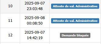 Attente de val. Administrative: الملف في انتظار المصادقة الإدارية.