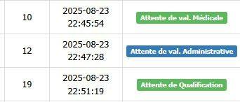 Attente de val. Médicale: الملف في انتظار المصادقة الطبية.
